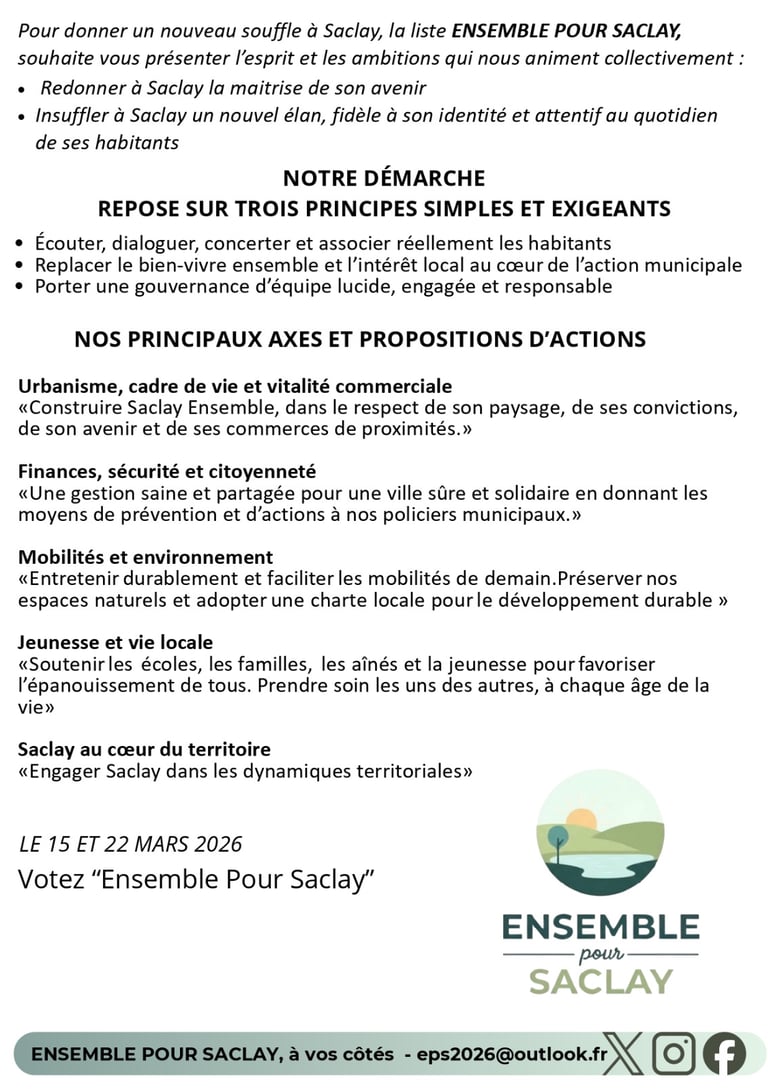 Vendredi 06 mars de 20h30 à 22h Saclay, au cœur des territoires * Salle Lino Ventura
